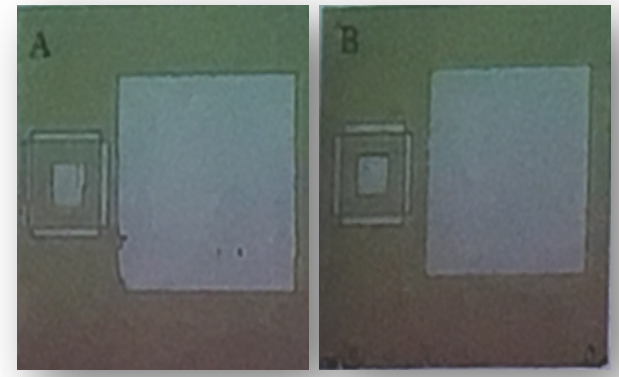 圖5. 充電效應導致圖形變形(B引入導電層)