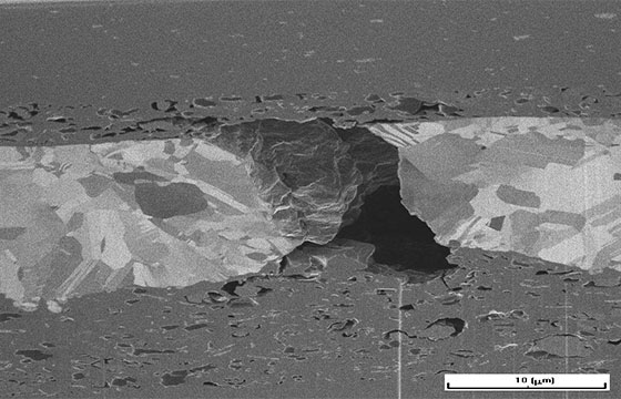 聚焦離子束技術(shù)(Focused Ion beam,F(xiàn)IB)是利用電透鏡將離子束聚焦成非常小尺寸的離子束轟擊材料表面,實(shí)現(xiàn)材料的剝離、沉積、注入、切割和改性。隨著納米科技的發(fā)展,納米尺度制造業(yè)發(fā)展迅速,而納米加工就是納米制造業(yè)的核心部分,納米加工的代表性方法就是聚焦離子束。近年來(lái)發(fā)展起來(lái)的聚焦離子束技術(shù)(FIB)利用高強(qiáng)度聚焦離子束對(duì)材料進(jìn)行納米加工,配合掃描電鏡(SEM)等高倍數(shù)電子顯微鏡實(shí)時(shí)觀(guān)察,成為了納米級(jí)分析、制造的主要方法。目前已廣泛應(yīng)用于半導(dǎo)體集成電路修改、離子注入、切割和故障分析等。